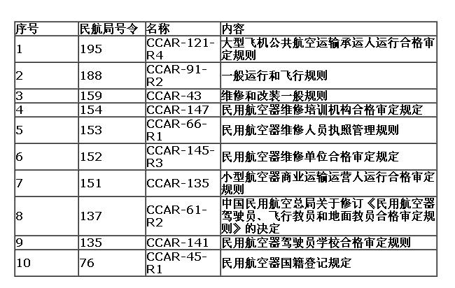 民航常用法律法規(guī)